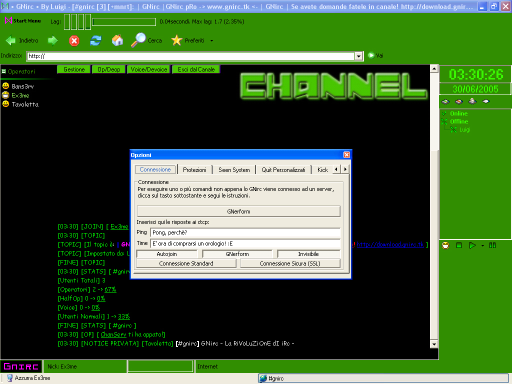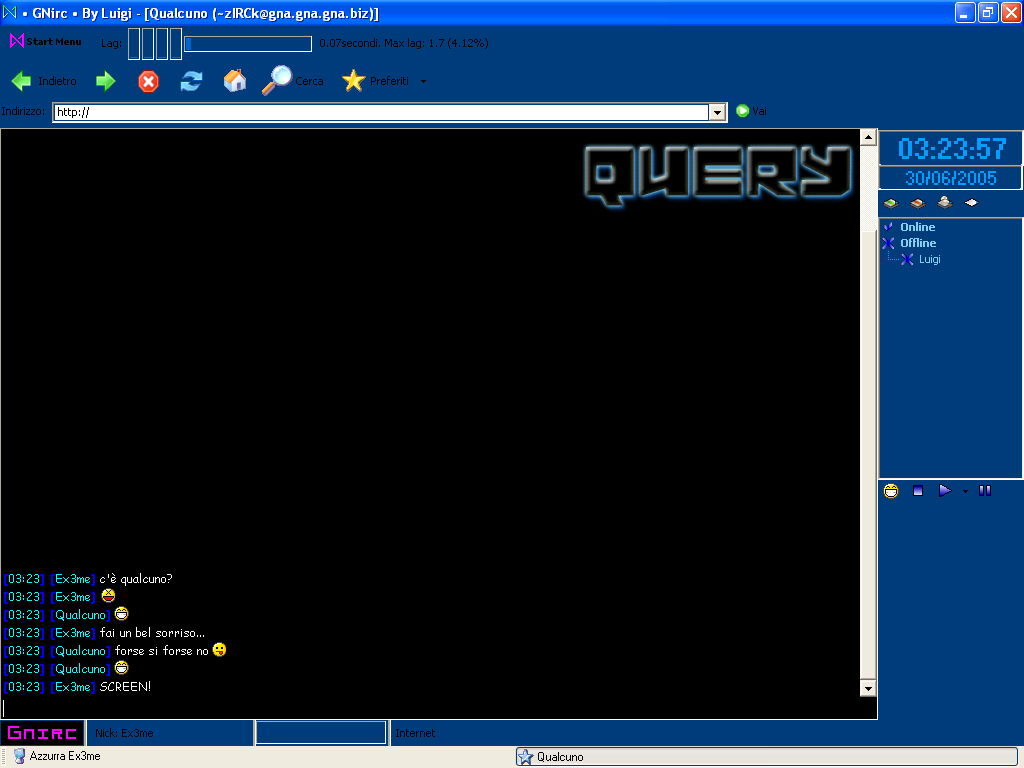 GNirc è stato, assieme a Tavoletta, il progetto più lungo a cui ho mai lavorato fino ad oggi. GNirc è nato dopo un serio problema con LuigiScript che mi ha insegnato che non si fanno backup mai troppo spesso. Il nome GNirc non ha un particolare significato, se si escludono le ultime tre lettere che significano Internet Relay Chat, e che sono comuni a quasi tutti i client IRC. Le prime due invece sono lì senza un particolare motivo, semplicemente perché mi piaceva il suono del nome GNirc.