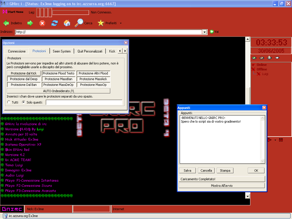 Essendo passato attraverso 3 anni di lavoro, alcune delle parti più datate di GNirc furono riscritte. Tra queste ci sono il music player con ricerca istantanea integrata (che all'epoca non era standard neanche su Windows), il nuovo away system e la nuova nicklist. Queste revisioni venivano rilasciate tramite un sistema di aggiornamenti automatici, che era presente in GNirc dalle prime versioni. Lo script programma includeva anche un sistema di temi che consentiva di modificarne l'aspetto, ma non avendo mai redatto una documentazione che spiegasse come realizzare i temi, ne sono stati prodotti solo un paio.
