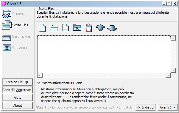 Per farli utilizzavo il tool da linea di comando fornito da Nokia per creare file .sis e alla fine ho deciso di scrivere un programmino per semplificare la procedura di creazione dei file di configurazione .pkg che il tool Nokia interpretava. Così è nato GNsis, che prende il nome NSIS del NullSoft Install System e ci aggiunge davanti la G che mi aveva portato fortuna nello sviluppo di GNirc.